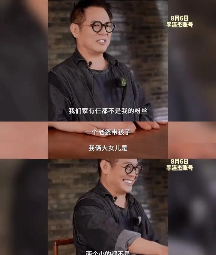 有趣的是,李连杰说,他的大女儿是自己的“铁粉”,从小看他的电影长大,对他有种偶像滤镜。而他和现任妻子利智的两个小女儿,反而对他“没感觉”。她们从小跟李连杰生活在一起,看到的是脱下明星光环的爸爸,普普通通,没啥偶像包袱。这差别,真是让人会心一笑。