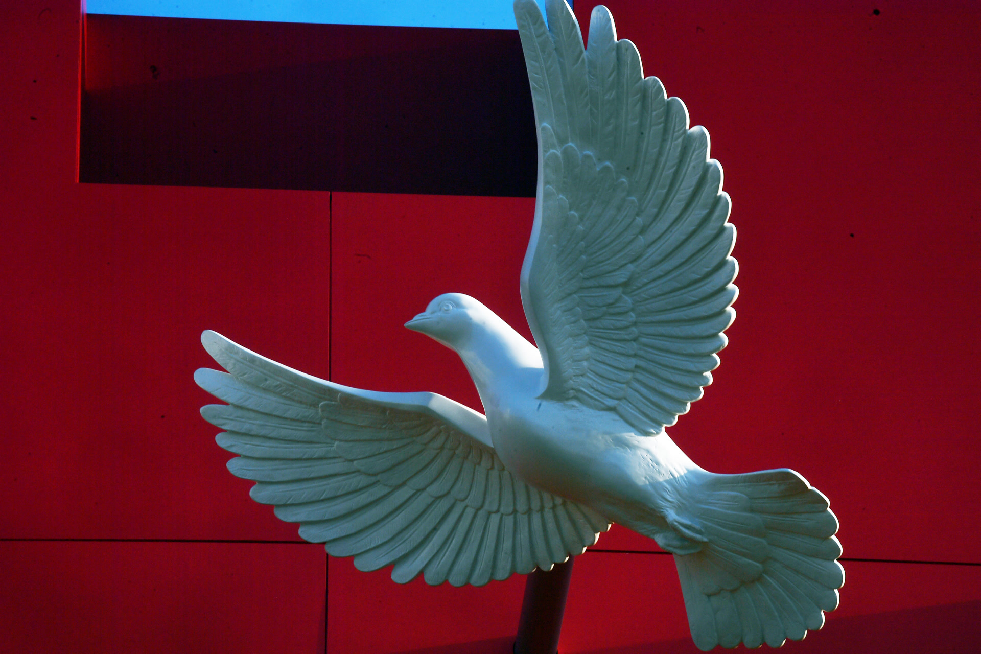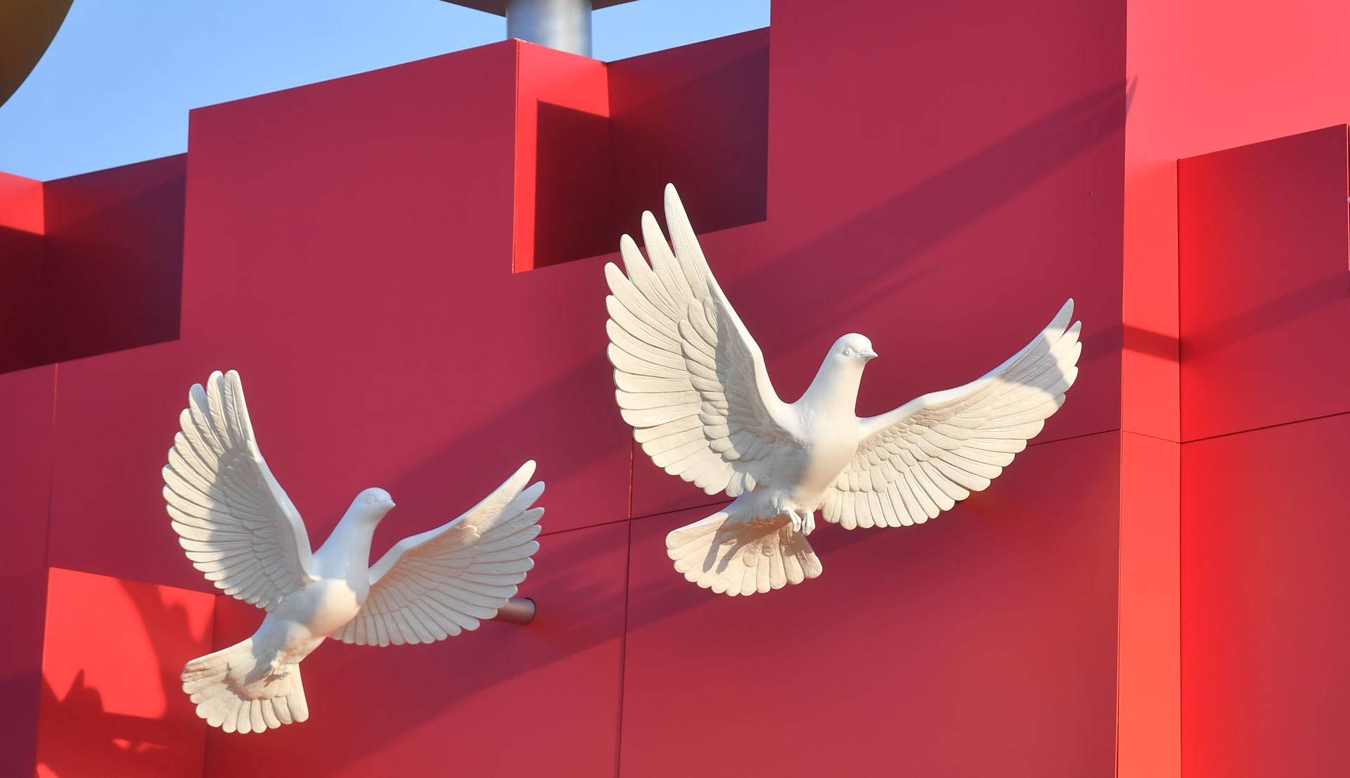 经过大量调研,团队选取了一种名为“北京白”的鸽子品种作为雕塑原型创作。“这个鸽子品种飞行姿态优雅平和,体型圆润饱满,性格温顺,各方面都很符合和平鸽的形象。”卢征远说。雕塑颜色也有讲究,经过大量上色实验和反复调制,最终为和平鸽雕塑定制了“祥云白”色彩。洁白如玉,白色中透出一点暖意,与年号台“曙光红”色彩交相辉映。