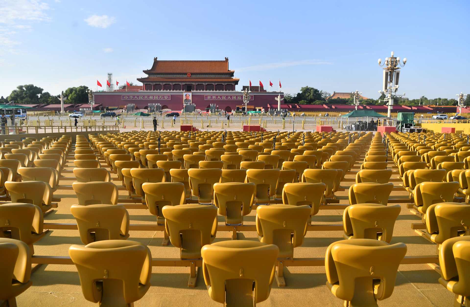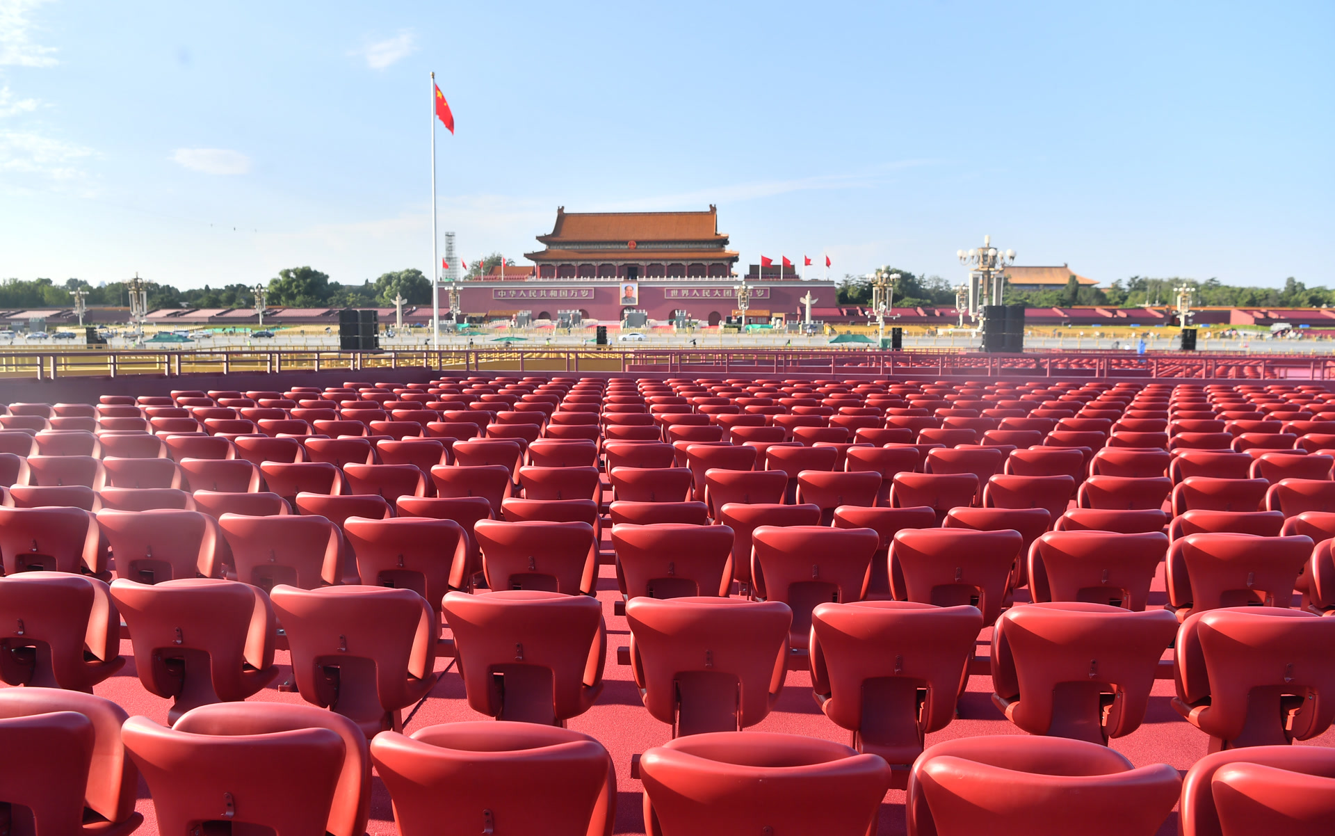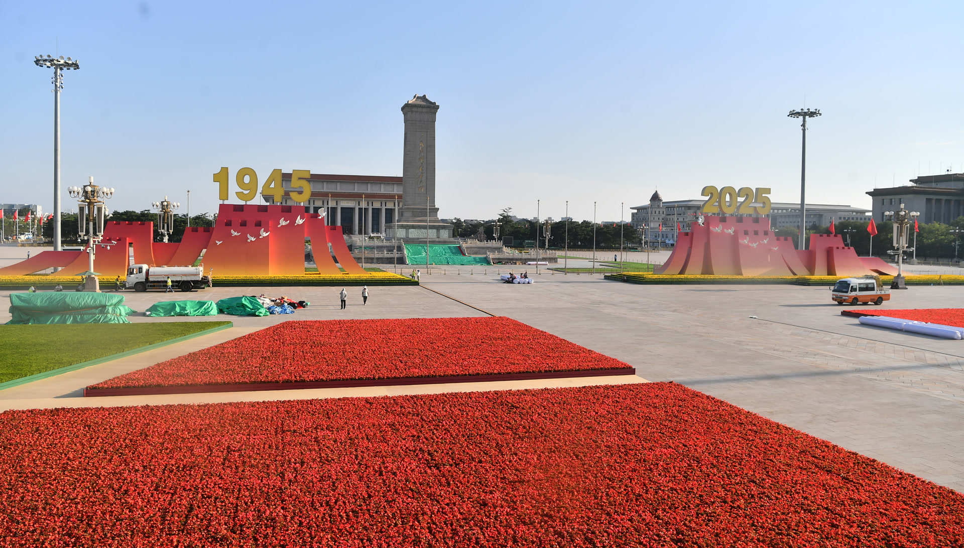 9月3日,纪念中国人民抗日战争暨世界反法西斯战争胜利80周年大会隆重举行,天安门广场的整体造型给人们留下深刻印象。