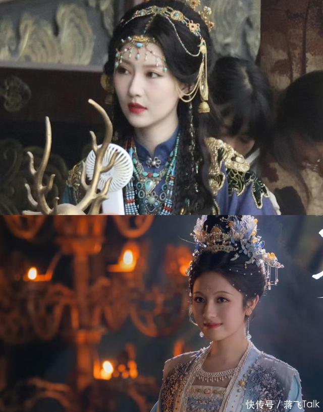 虽然这部剧张鑫戏份不多,但古装扮相真的让人眼前一亮,蓝白服饰、金饰流苏的异域造型突出,兼具娇俏灵动与暗黑心机的反差感。